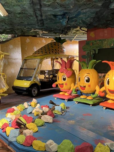 パイナップルのカートに乗って、施設内をめぐり、到着したところでお土産コーナーをぐるぐる歩いて回りながら楽しむという感じです。