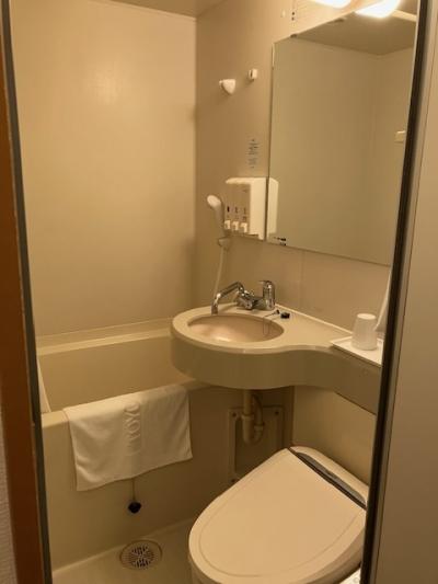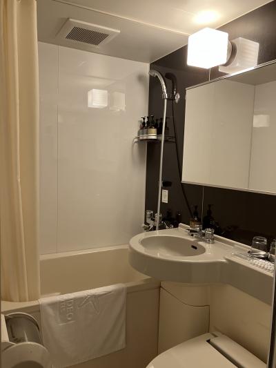 部屋は清潔感があり、きれいで、お風呂も一般的なビジネスホテルに比べ、浴槽も広く、洗面ボウルも大きいため、使いやすかったです。部屋の明かりは蛍光灯で明るいので、ビジネス利用でも十分使えると思います。