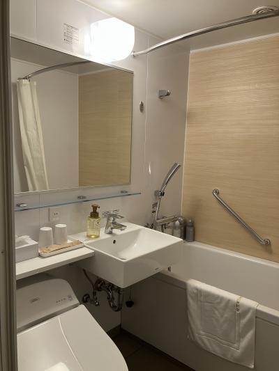 部屋とお風呂は清潔感があり、とても快適に過ごせました。お風呂はユニットバスですが、広いつくりだったので、とても使いやすかったです。体を洗うボディタオルも安っぽい感じのものではなく、ふわふわした生地のもので、使い心地がよく、自宅にも欲しいと思ったくらいです。タオルも肌触りがよかったです。ミネラルウォーターのサービスもありました。またリピートしたい宿のひとつです。