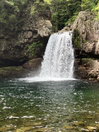 三段峡は大きく3つのエリアに分かれています。その中で歩く距離が短いのは三段滝や猿飛のある二段滝方面です。時間がなかったので、二段滝エリアにのみ行きましたが、三段滝は二段滝に行く途中の分かれ道から行くことができるので、時間があれば両方行ってみてもよいと思います。二段滝に行く方面は遊歩道がありますが、途中倒木や落石があり、歩きやすい靴でいくのがよいと思います。また、ワイモバイルの電波は入らないので、注意が必要です。
