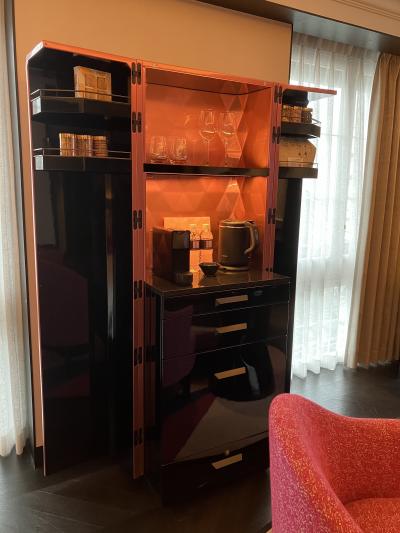 エントランスはそれほど広さがないためか、他の高級ホテルと比べて割と質素な印象を受けました。最上階のレセプションや客室はフォションの世界観を感じることができる豪華さです。部屋のグルメバーのお菓子は種類が多く、すべて持ち帰りがOKで宿泊者限定のエコバッグに入れて持って帰れます。バスローブ、パジャマもフォションのマークが入っていたり、至るところでフォションが満喫できます。