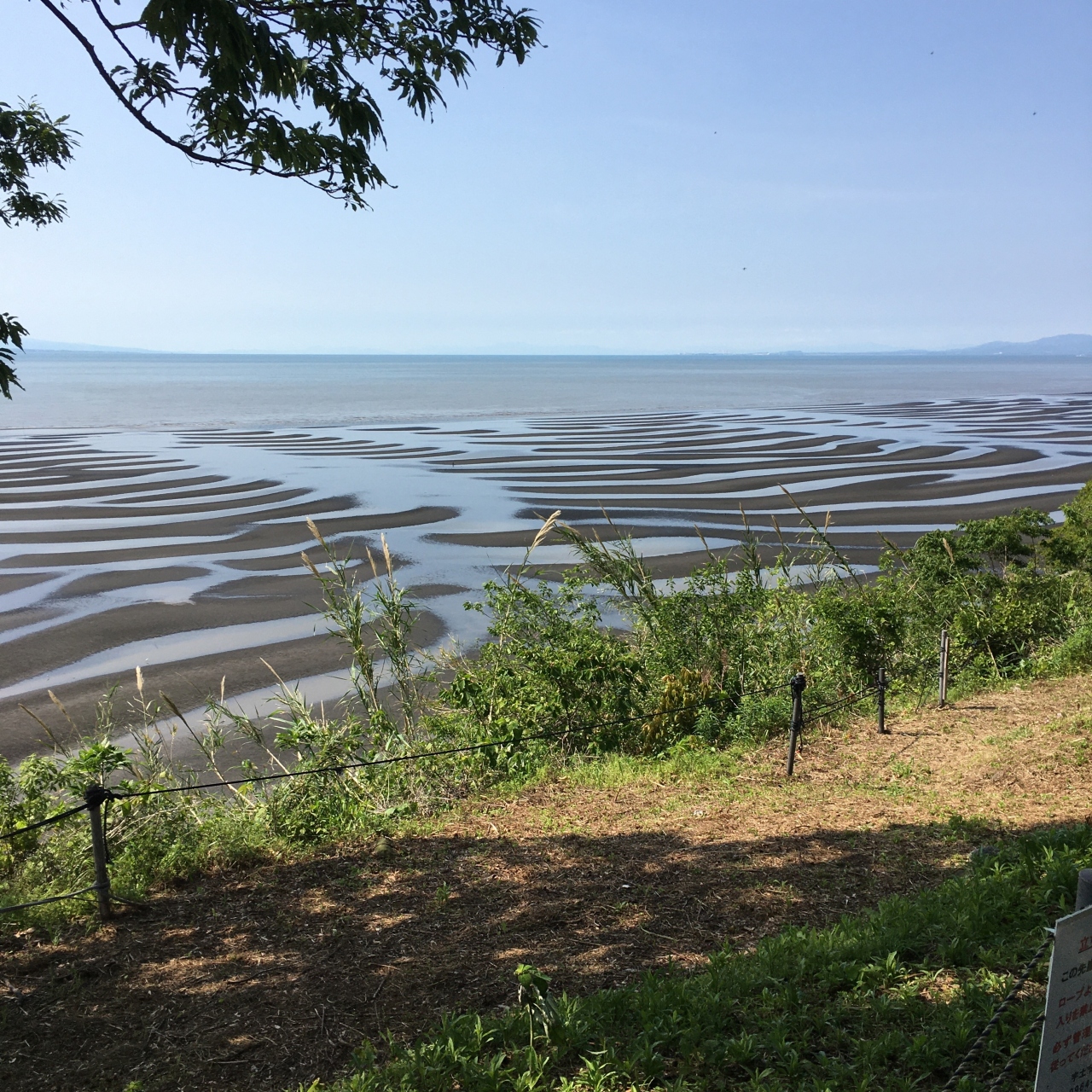 干潮時には美しい砂紋が見れる海岸です。干潮と日没が重なるときは年に数回しかありませんが、私が訪問したときは日中に干潮となる準絶景日でした。