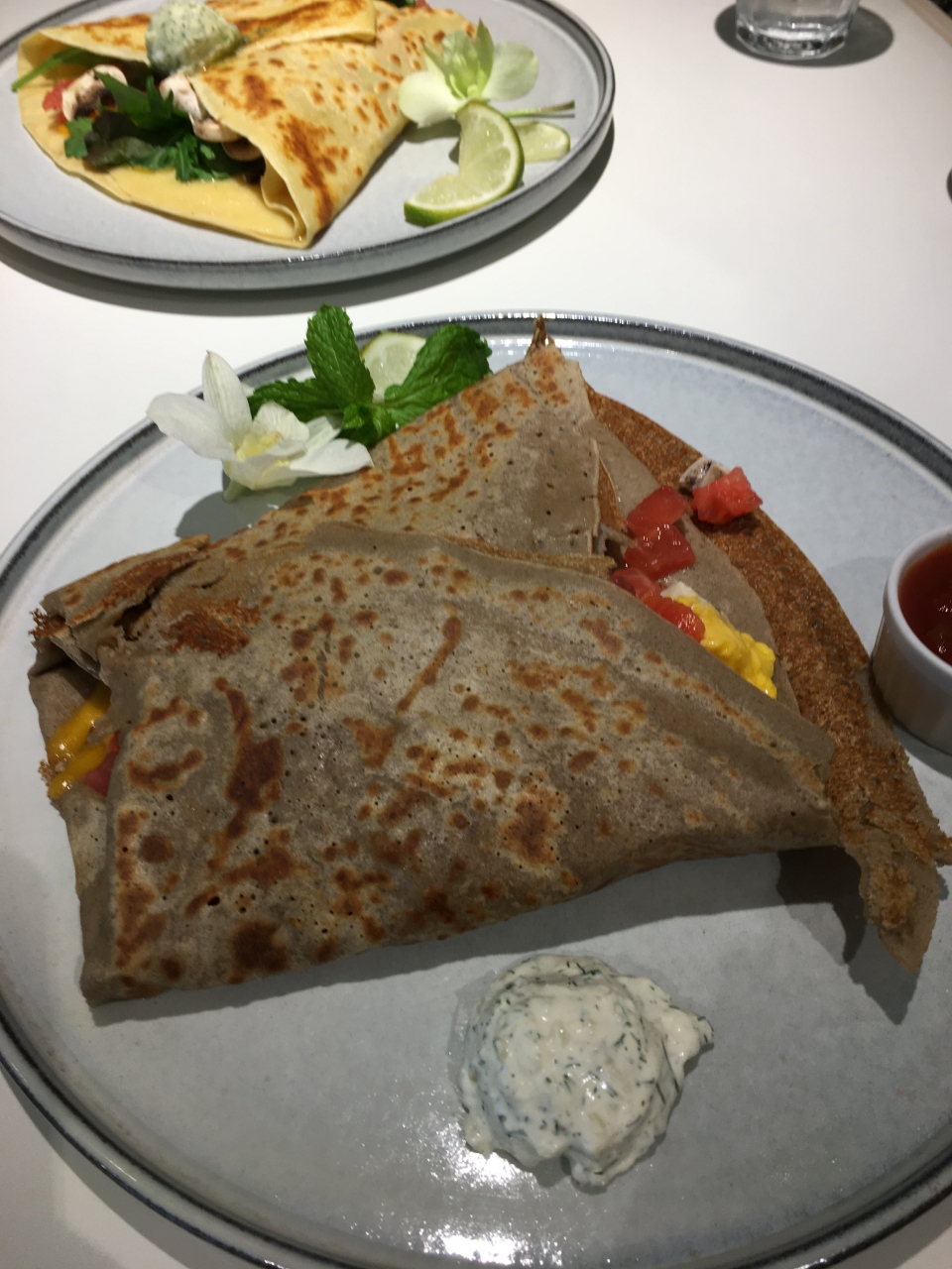 クレープはそば粉タイプのものに追加料金で変更も可能です。