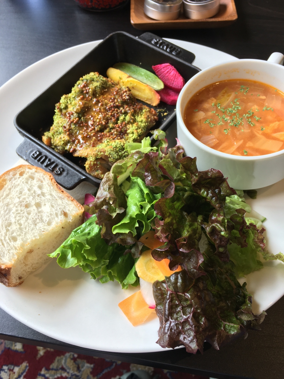 いろいろな種類の野菜が使われており、ボリュームも多すぎず少なすぎずでちょうど良い感じでした。味付けは素朴な感じです。