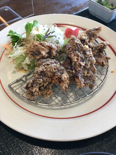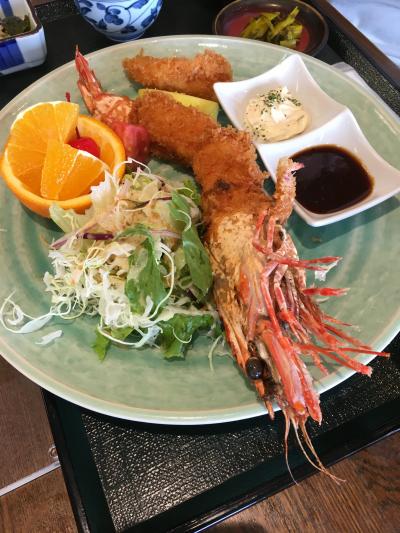 クジラの竜田揚げと海老フライの定食を注文しました。海老フライは特大の大きさで食べ応えがありました。竜田揚げもおいしかったですが、クジラ独特のものなのか、肉はかためでした。- 旅行時期