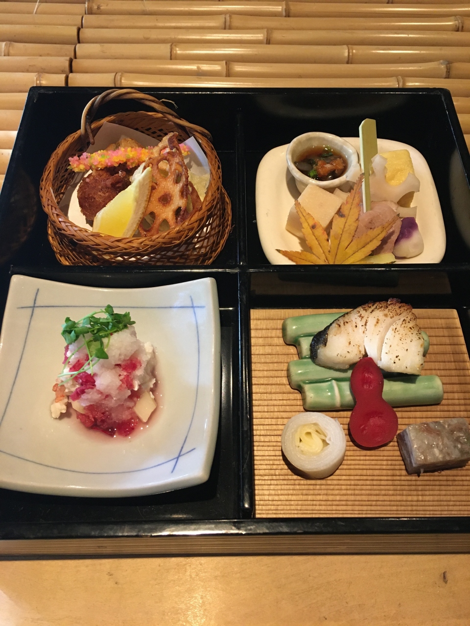 懐石松花堂弁当を注文しました。料理の味は上品でどれも美味しかったです。また、ボリュームについても、多すぎず少なすぎずのちょうどよいものでした。