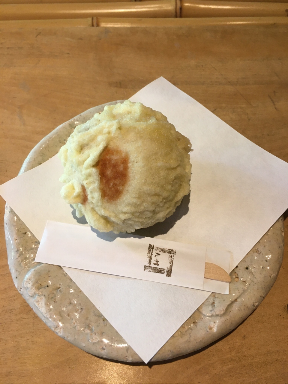 北野天満宮からすぐのところにお店があります。イートインとテイクアウトと両方あります。イートインは3個入りの粟餅から注文できますが、一人必ず1セット注文しなければいけないということで、ランチ前だったため、イートインは断念してテイクアウトにしました。