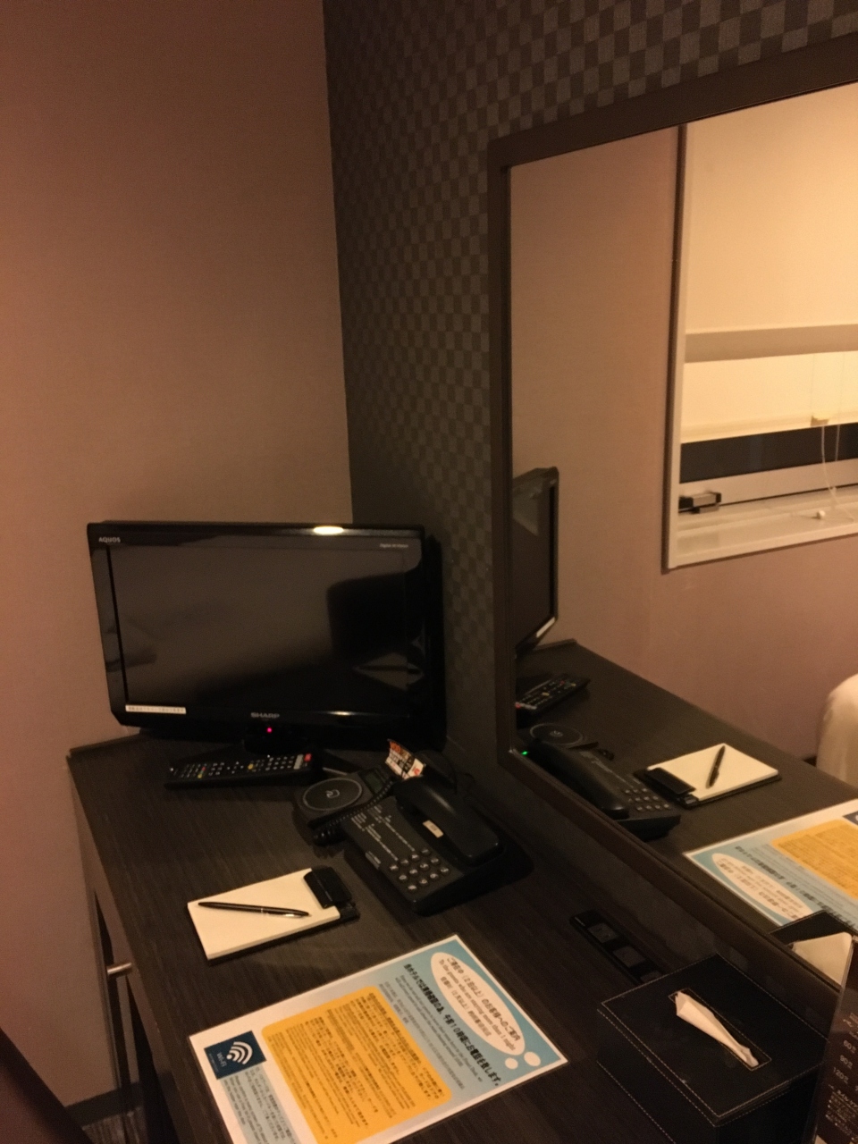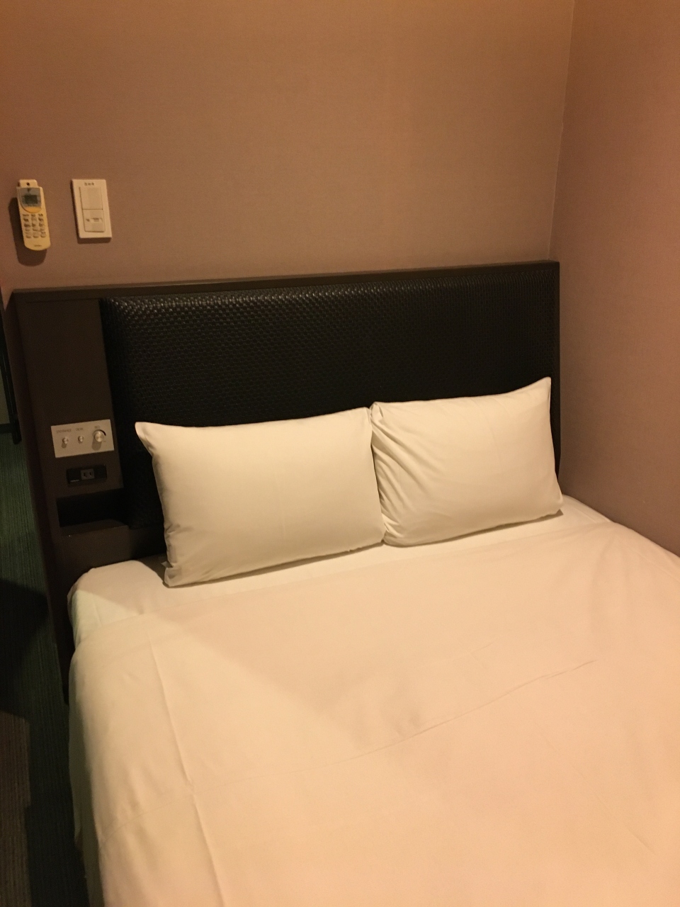 客室はセミダブルを2名で利用しましたが、2名分の旅行用の荷物をおいてしまうと部屋はかなりせまく感じました。