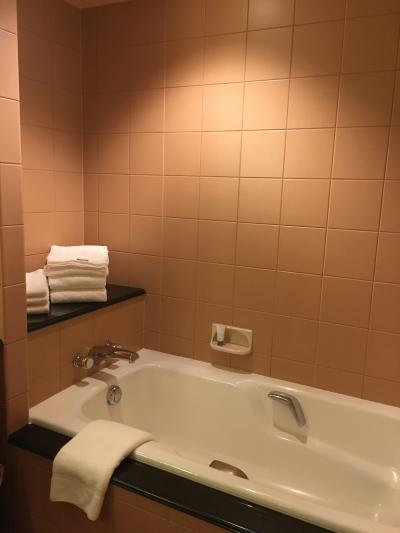 ホテルの客室は2人でも十分に荷物を置くスペースがあり、朝食を食べるのにも椅子が2つあったため、狭い思いをすることなく食べることが可能でした。バスルームも浴槽が広く、一般的なビジネスホテルと比較して、広くてゆったりしていました。