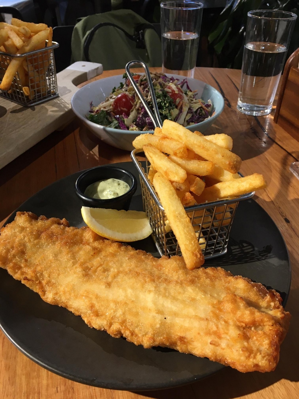 フィッシュアンドチップスなど、料理はボリュームがありました。テーブルが小さくあまりゆったりとしたスペースがとれる感じではありませんが、料理はおいしかったです。- 旅行時期