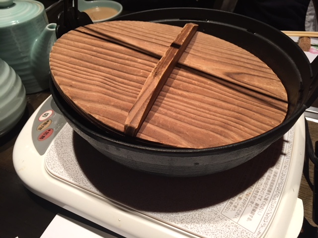 囲炉裏がある広間に案内され、座敷に座って食べることになります。
