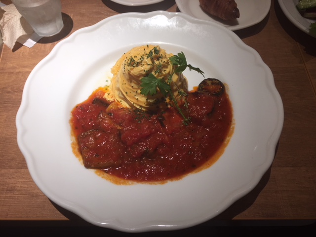 ランチはパスタメニューが中心で、サラダ&食後のドリンク(紅茶、コーヒーなど)がついてきます。
