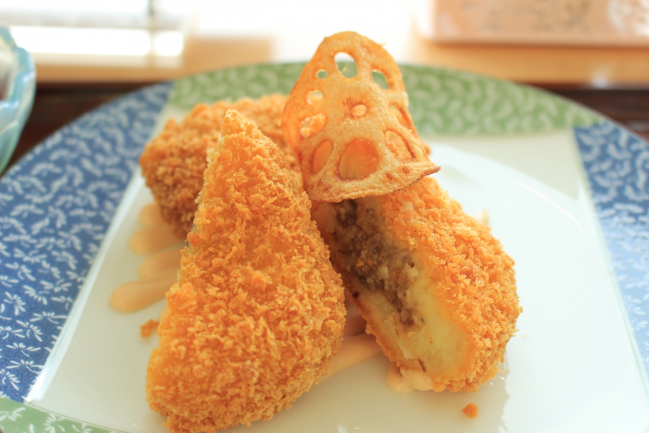 佐賀牛コロッケの定食を注文しました。コロッケの衣はさくさくしていて、中のじゃがいもお肉もとてもおいしかったです。盛り付けもとてもきれいで、クオリティの高い食事でした。- 旅行時期