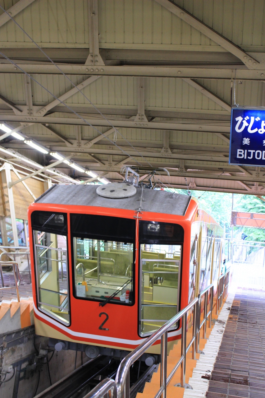 前日の豪雨から運休しないか不安でしたが、天候はいまいちなもののケーブルカーは動いていました。富山地鉄の立山駅から降りたら、すぐにケーブルカーへ乗り換えることができます。急斜面を上がっていく感じがわくわくしますが、乗っている時間はあまり長くないです。