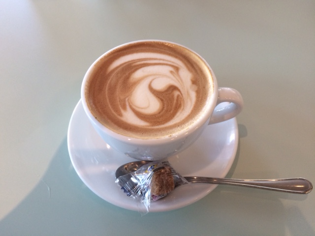 スムージを頼もうとしたところ、全部売り切れとのことで、カフェラテを注文しました。