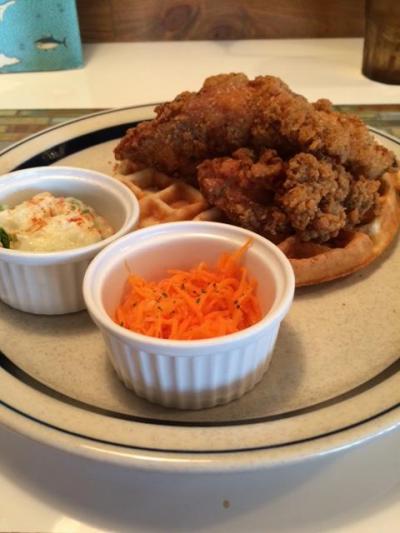 ランチで訪問しました。こちらの看板メニューのワッフルチキンのプレートを注文。