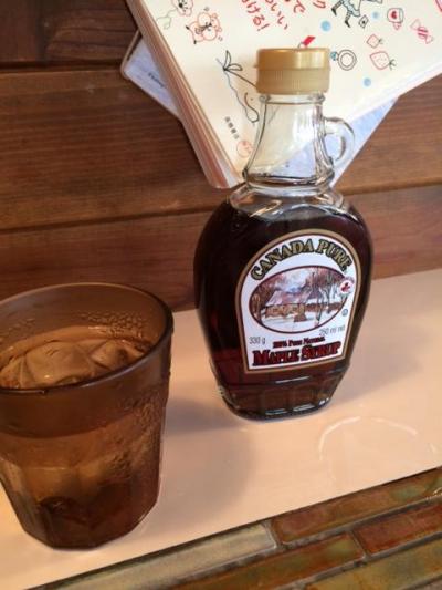 メープルシロップは瓶に入ったものを一緒に持ってきれくれます。