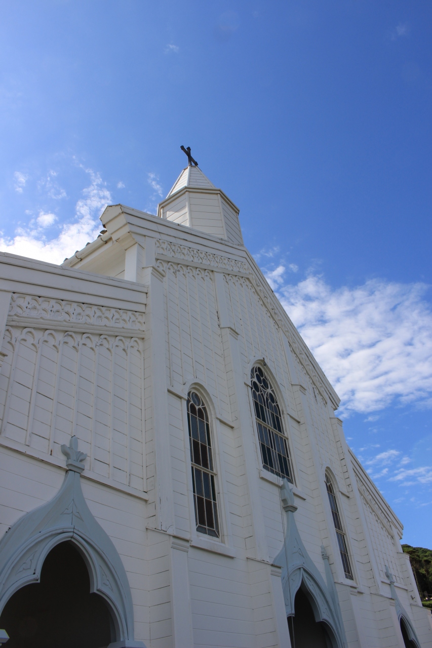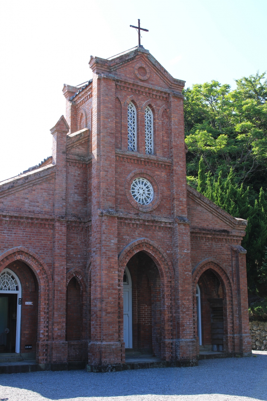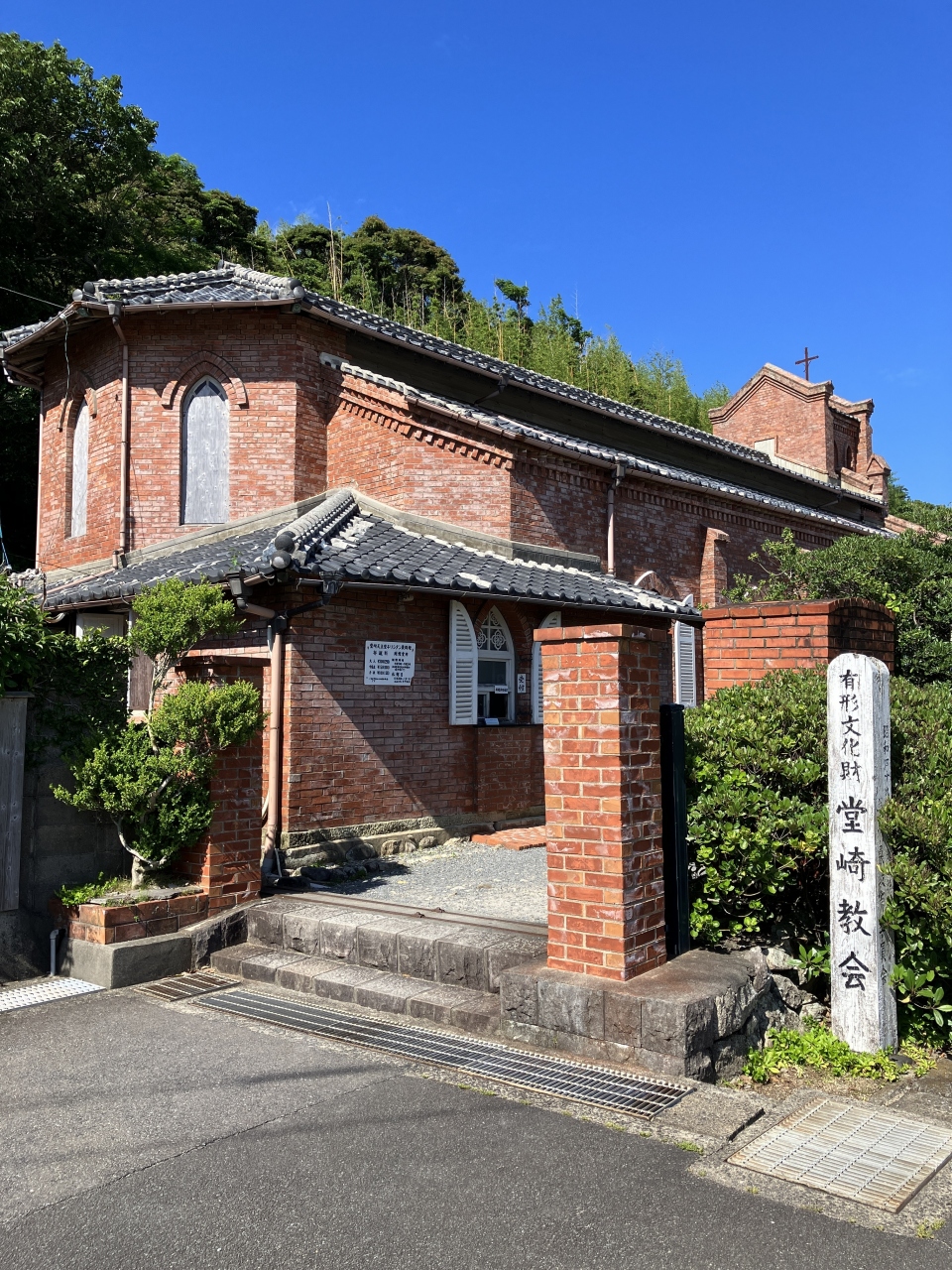 海の近くにあるレンガ造りの建物が印象的です。福江の中心部からは遠いところにあるので、車などでの移動が必須になります。教会の中に入るのには料金がいるため、今回は外観のみを見学しました。近くには堂崎マドレーヌのお店もあります。
