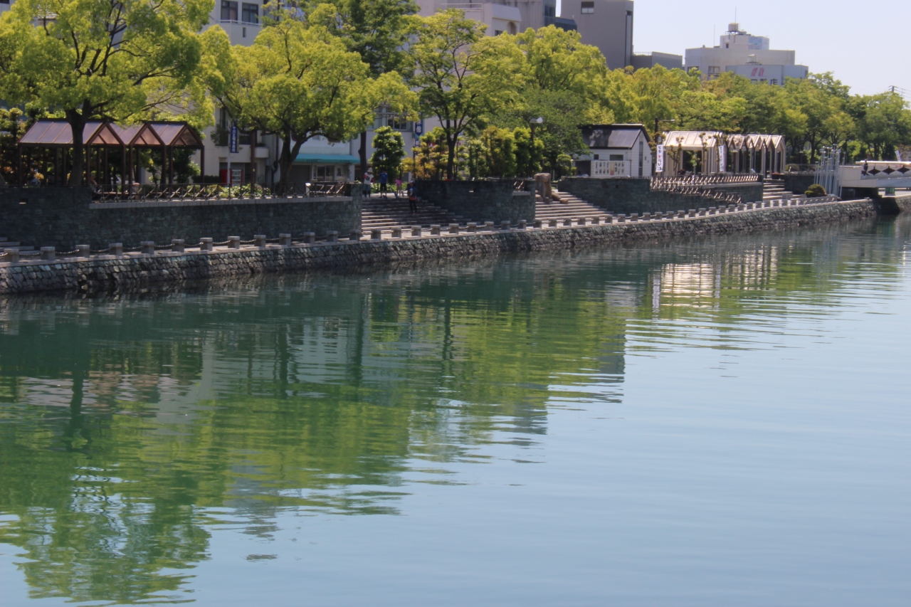 徳島駅から歩いてすぐ近くにあります。新町川の両側が公園になっていて、整備されており、とてもきれいです。時々、イベントなどもやっていて、にぎわっています。