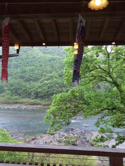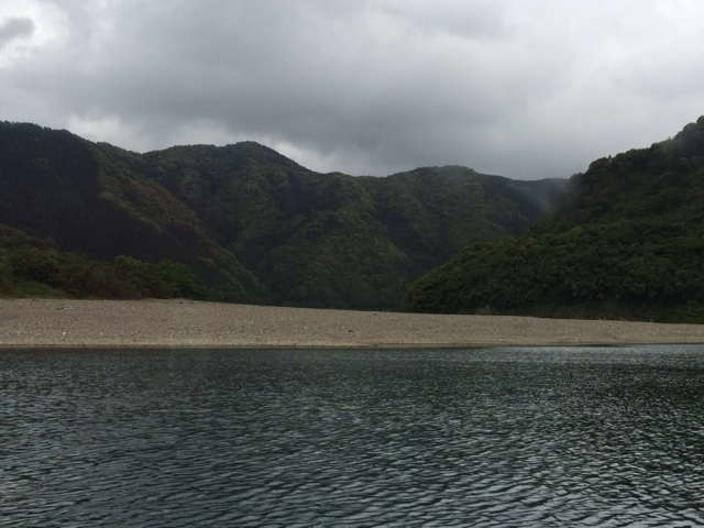 四万十川の川下りを申し込んでいましたが、当日はあいにくの雨。屋形船だったため、雨が降っても乗れましたが、空はどんよりしていて、景色はいまいちでした。