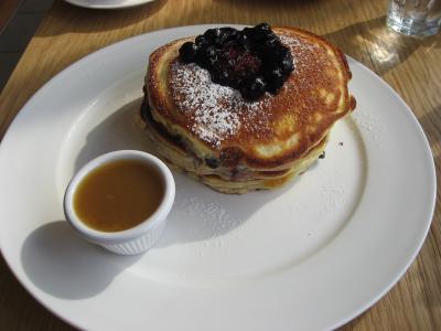 ただ、ブルベリーがソースだけでなく、生地にもブルベーリーの実が練りこまれていて、パンケーキの味わいをあまり感じることができなくて残念でした。メープルシロップも思ったほど甘みがなく、全体的なパンケーキの味は評判を聞いていたほどおいしいとは感じませんでした。- 旅行時期
