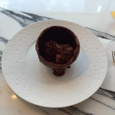 名前は忘れてしまいましたが、球型をしたチョコレートに熱いホットチョコレートをかけて食べるスイーツを注文しました。おいしかったですが、全部食べるには濃厚過ぎました。