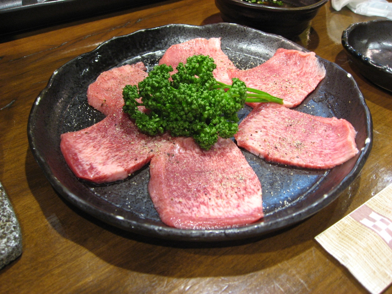 来店したときにはお店はほぼ満席でした。ハラミを注文しようしたら、すでに売り切れとのこと。特上系の肉もすでに売り切れで、カルビや牛タン、野菜セットなどを注文しました。カルビはあまり好きな肉ではなかったのですが、こちらのお店のカルビはとてもおいしかったです。