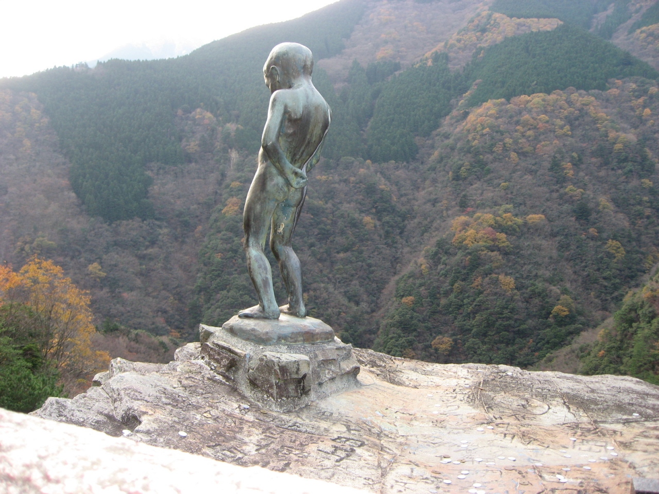 祖谷渓の道すがらの断崖絶壁にぽつんと像があります。