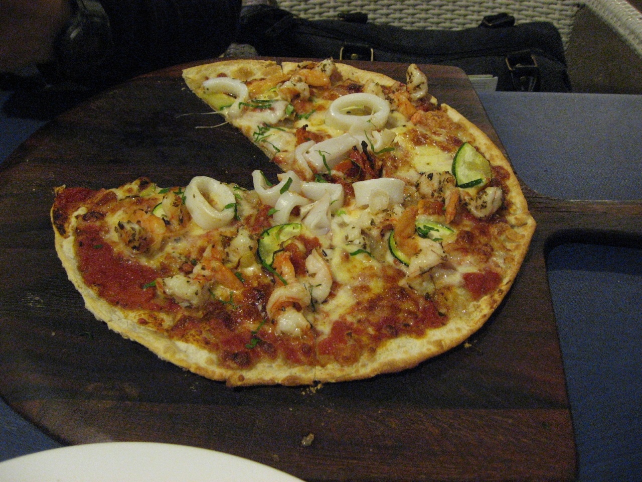 サラダ、ピザ、魚料理の3皿とドリンクを頼みましたが、2人だとこれで十分の量でした。味はおいしかったです。お店はオープンエアーな感じで、雰囲気もよいです。- 旅行時期