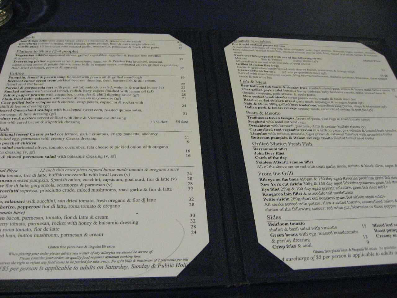 一品あたり結構いいお値段はしますが、オーストラリアは一品あたりの量がかなり多いです。なので、欲張って頼むとお腹いっぱいで食べきれないというのを最初の数日間で学んだので、オーダーは少なめにしました。