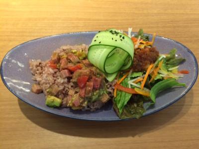 ランチメニューは600円~あります。私が頼んだ写真にあるライスボウルは800円でした。ワンドリンク付きです。