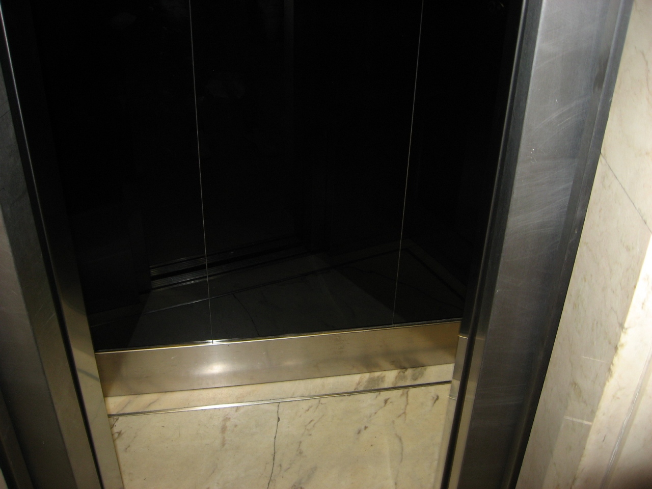 ホテルのエレベーターが少し変わっており、中が台形の形がしています。狭くて2人にスーツケースを乗せたら、それで満員という感じです。