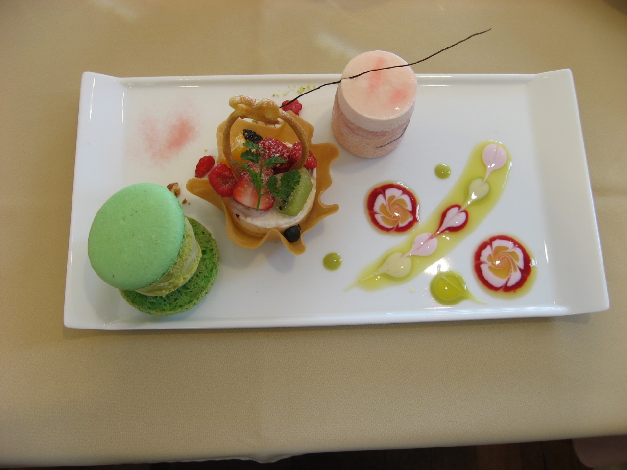 スイーツはとても凝っていて、お皿に描かれているソースで作る模様は、食べる直前に目の前でスタッフの方が作ってくれます。
