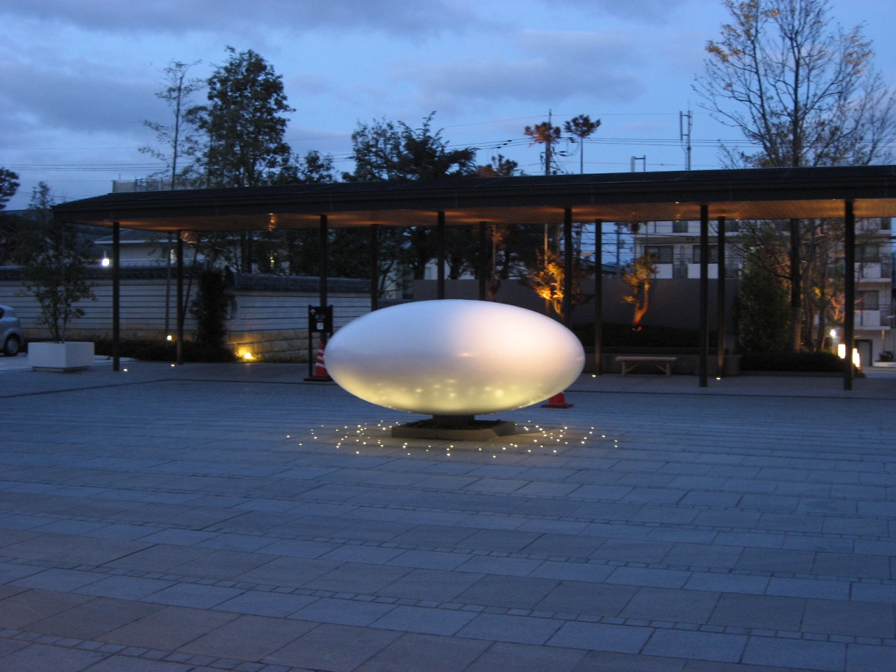 暗くなってから、ホテルの外へ出ると、入口のモニュメントが少しライトアップしていてきれいでした。