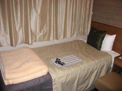 そのため、部屋は手狭で、ベットも小さめでしたが、荷物を置く棚があったのと1泊だけの利用だったので、それほど狭さは気になりませんでした。