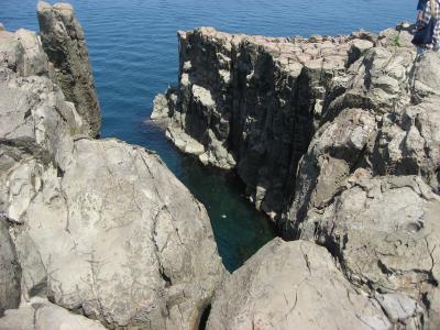 東尋坊は特に安全策などなく、断崖絶壁を自由に散策できるようになっているので、スニーカーなど歩きやすい靴で行ったほうがよいです。天気が良かったので、眺めはかなり良かったです。