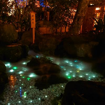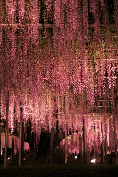 大藤は圧巻の大きさで、特に夜、ライトアップされると幻想的な美しさになります。
