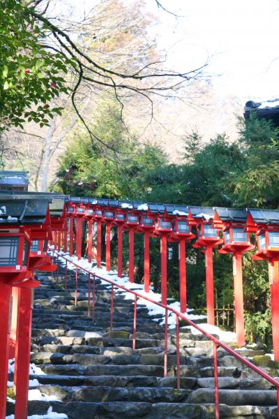 1月、京都の中心部より一段と寒さの厳しい鞍馬の貴船神社は、雪景色に赤い灯篭が映えてとても美しい景色でした。