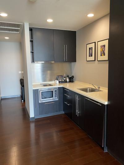 チャオプラヤー川に面しており、ロケーションはとてもいいです。部屋にはミニキッチンと電子レンジもあり調理も可能です。敷地内にコンビニがあり野菜や肉などの生鮮品や冷食を買うことも出来ます。