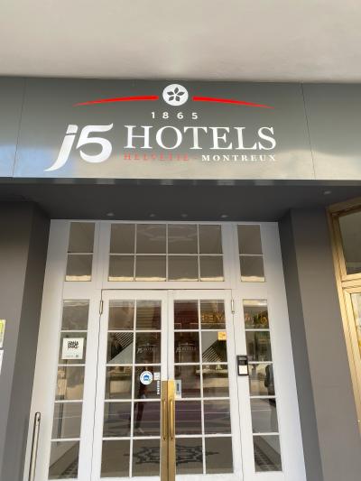 駅からは歩くと少しありますが、宿泊者にもらえるリヴィエラカードを使うと無料でバスに乗れます。ホテルのすぐ横のバス停は3系統のバスが止まるので駅に行くのは便利です。ホテルは少し古く改装中でした。でも、部屋の中はリノベーションされていてとてもきれいです。レマン湖までもすぐ行けます。