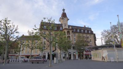 レマン湖のすぐそばです。残念ながらレイクビューがとれなかったのですが、レイクビューはレマン湖一望です。地下鉄の駅に隣接しており便利です。船の乗り場にも使いです。湖畔には、レストランも多くまた、スーパーもあります。