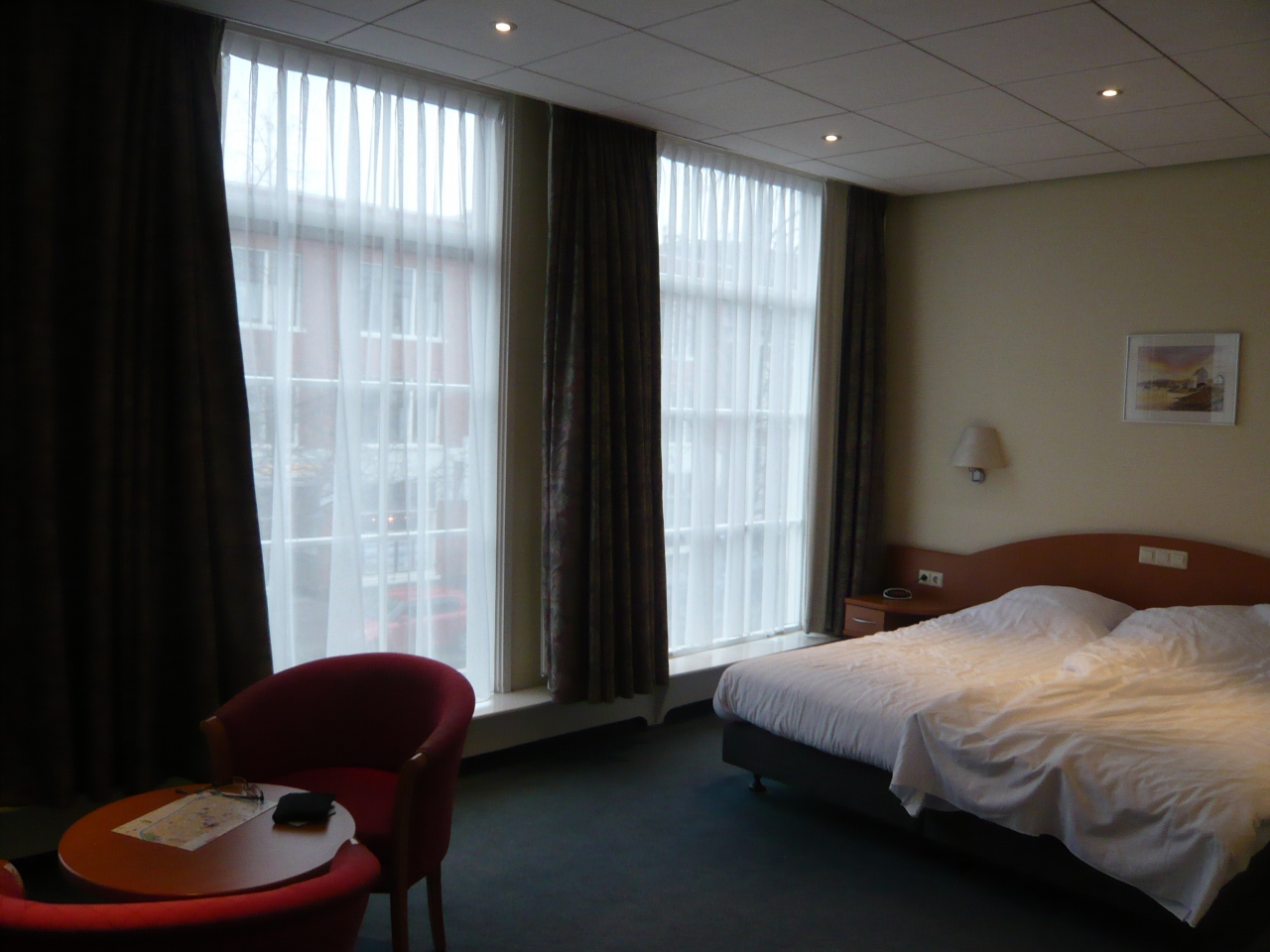 運河に面したホテルで、入口がちょっと分かり難いかもしれませんが、四角い看板が出ています。家族的な雰囲気ながら歴史を感じるホテルで、床が少し軋んだりしますが、そこがまた良くて、部屋も広く、大きい窓ガラスから運河を見下ろすことが出来ます。駅にも徒歩で行けますし、旧教会、新教会にも歩いて数分です。お薦めホテルです。