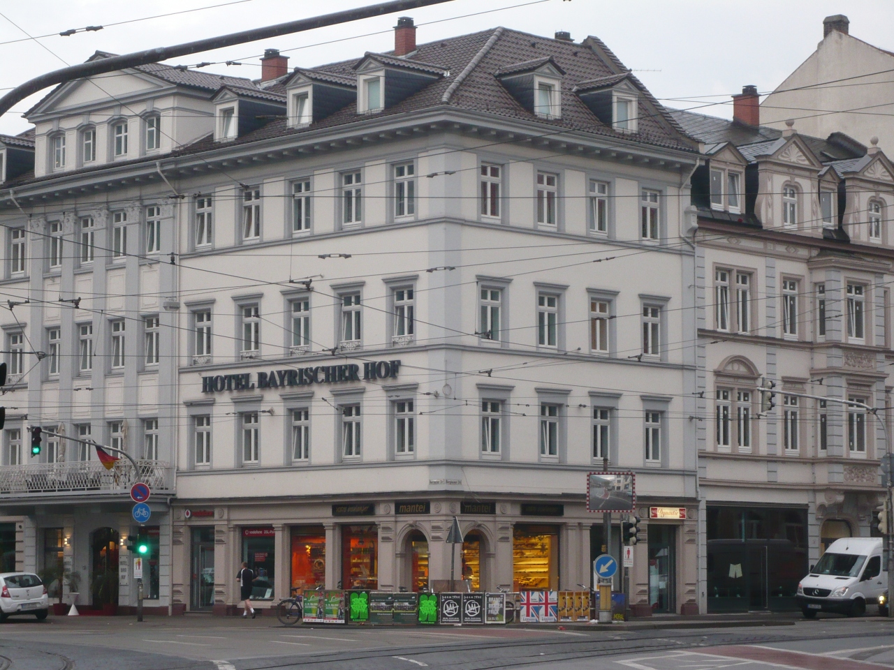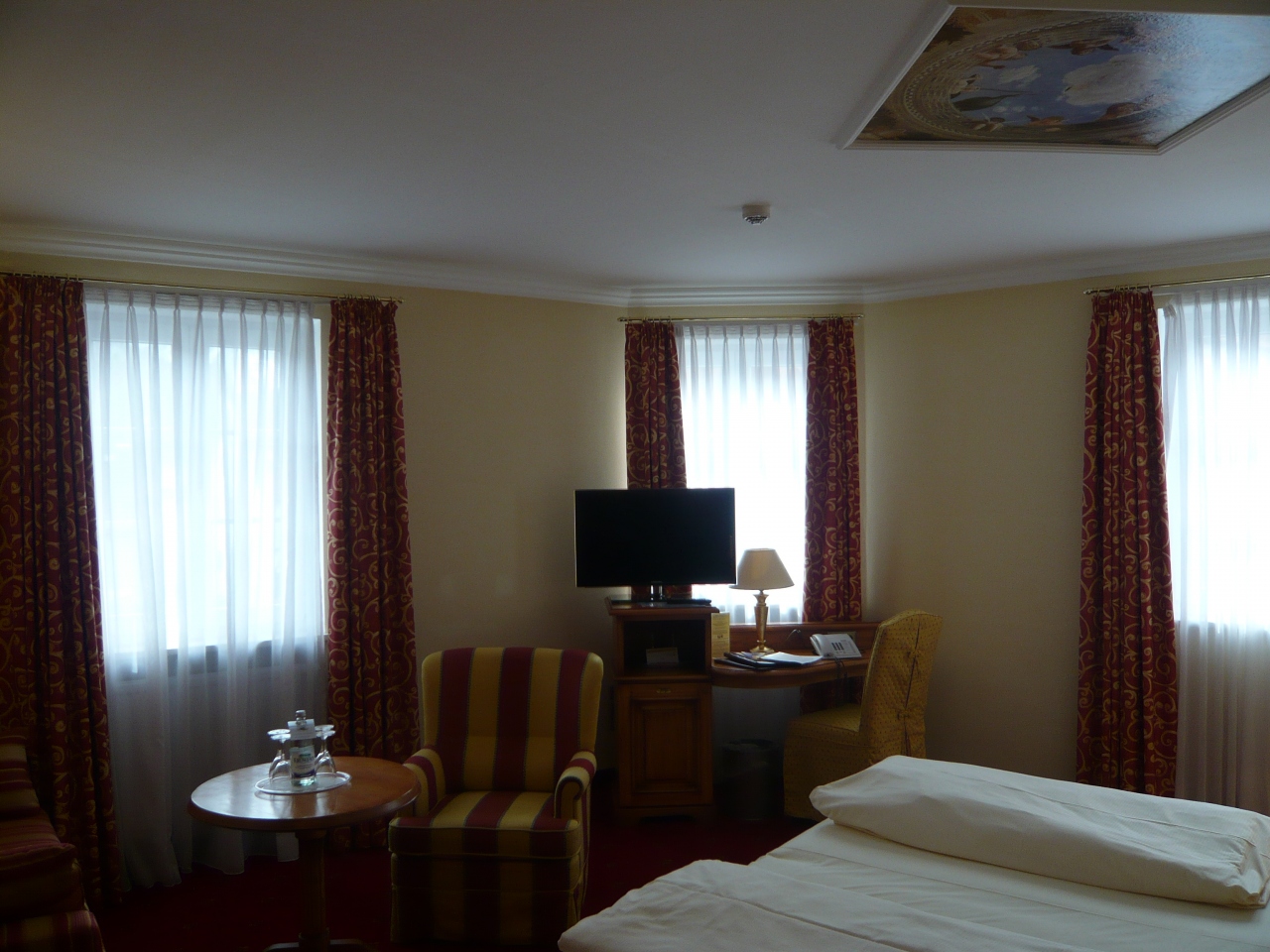 フランクフルトの駅からトラムで行きました。外観は中世の歴史ある建物って感じです。ロビーや廊下はゆったりしています。部屋も広いです。1階にはオープンスペースのあるカフェやレストランがあって宿泊以外の人もたくさん利用しているようです。豪華な気分になれます。