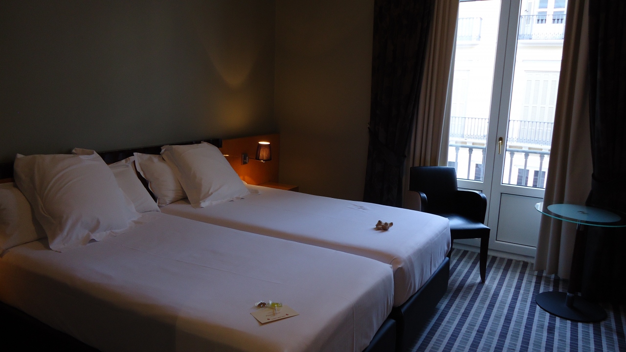 ラリオス通りに面していて、どこに行くにも便利です。大聖堂・ピカソ美術館などすべて徒歩圏です。スタッフもフレンドリーです。部屋はさほど広くはありませんが、ヨーロッパの歴史的な建物のホテルとしては十分です。ラリオス通りに面してテラスがあります。部屋の施設は機能的です。