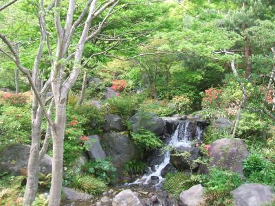 お風呂も庭園のような作りで滝のような