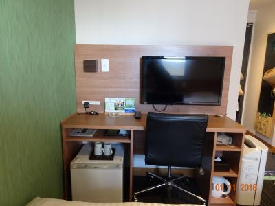 まず、フロントの女性にがっかり(次の日にはいい人でしたが)で、客室のドアを開けたら写真と全く違う光景が。そして次の日、外出から戻ったら、全く掃除をしてませんでした。ここは駅から10分以上歩くのに線路が近いですし、何より小さめの鏡が洗面所に1つだけ。姿見がないのは不便でした。部屋の広さはそこそこなので残念です。- 旅行時期
