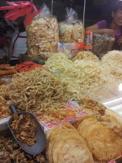 試食もバンバンさせてくれて、お互い身振り手振りで伝えあって、1袋100元のスルメを2種類購入。