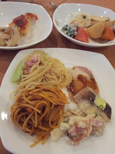 あとはサラダ・カレー・パスタ(2種)・ピザ(2種)・スープ・うどん・五穀米ごはん・デザート(15種類くらい)。