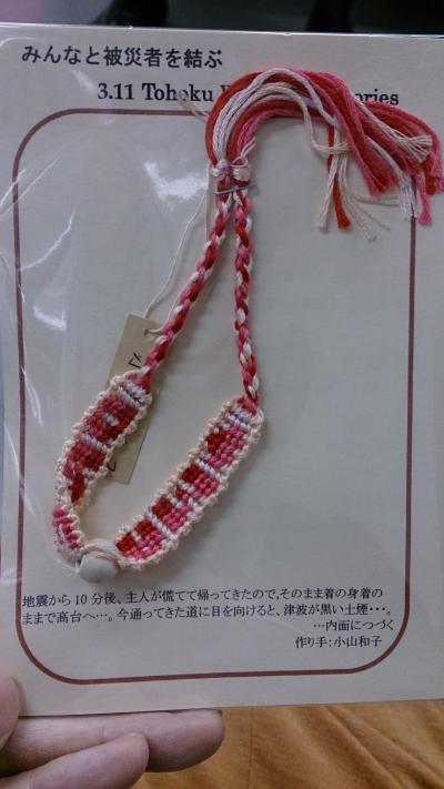 被災された方が作ったキーホルダーやミサンガが1つ600円で販売