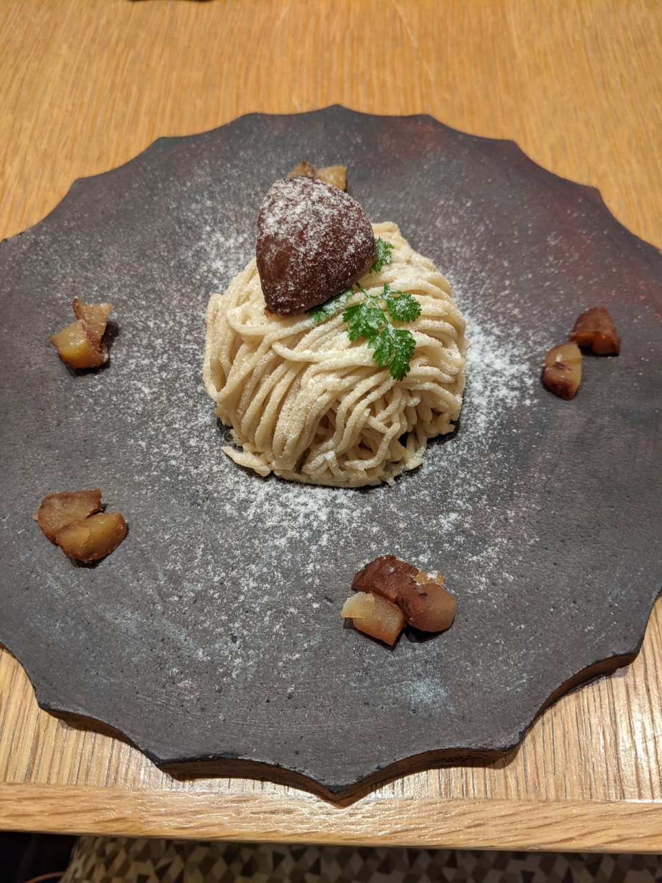 源吉兆庵銀座本店は2階3階がカフェになっています。和菓子にお抹茶のイメージでしたが、デザートは洋菓子もあり、セットのドリンクはコーヒーor紅茶でした。和栗のモンブランは甘さ控えめで素材の味がいきてとても美味しかったです。